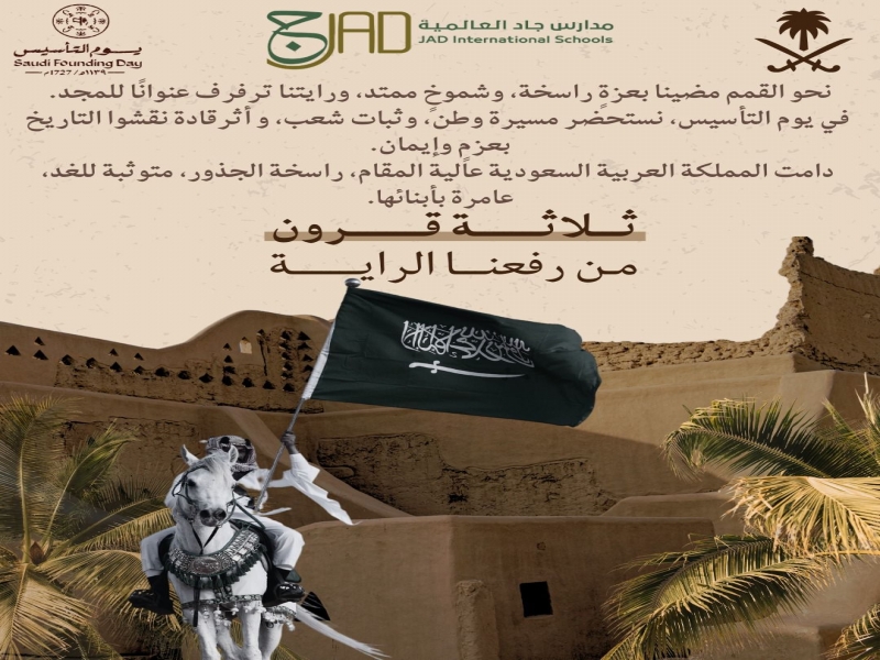 تهنئة مدارس جاد العالمية بمناسبة يوم التأسيس السعودي