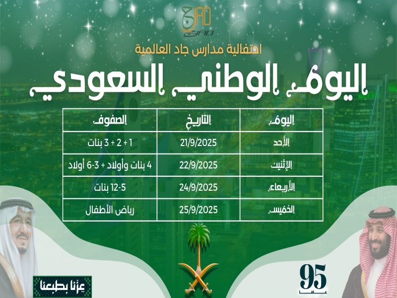 تهنئة مدارس جاد العالمية بمناسبة يوم التأسيس السعودي